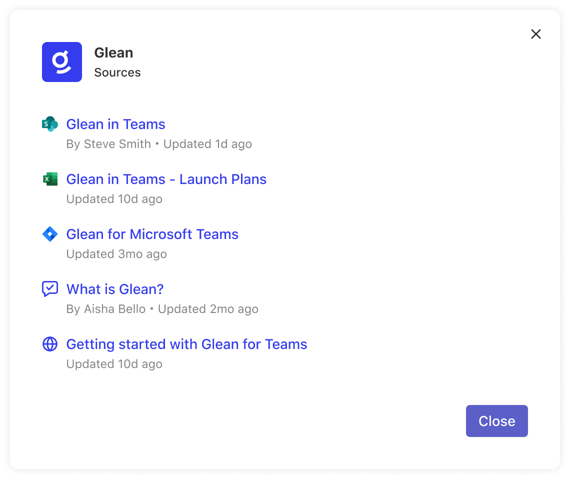 b. Glean is now enabled for Teams, allowing your organization to access the app and its features directly through Teams.